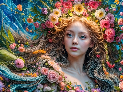 Róże, Dziewczyna, Kwiaty, Grafika