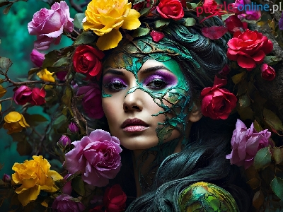 Kobieta, Makijaż, Twarz, Grafika Abstrakcja, Róże
