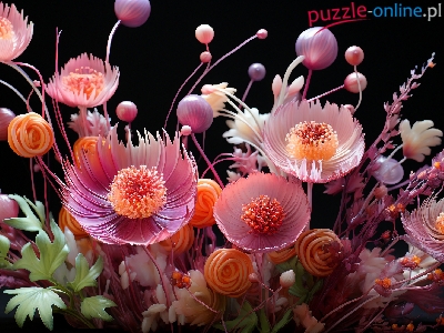 Puzzle Różowe, Kwiaty, Bukiet, Grafika