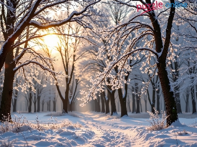 Zima, Drzewa, Las, Grafika AI, Słońce