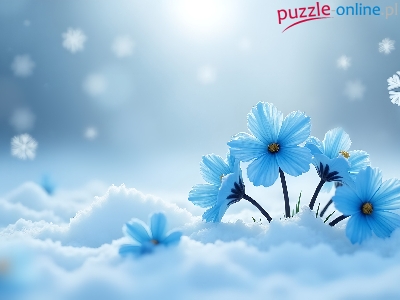 Puzzle Åšnieg, Niebieskie, Kwiaty, Grafika