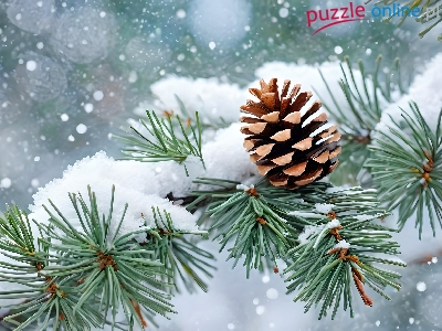 Puzzle Åšnieg, Sosna, Szyszka, Grafika
