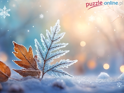 Puzzle Śnieżynki, Liście, Śnieg, Grafika