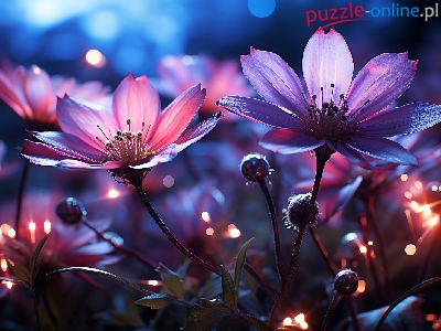 Puzzle Światło, Kwiaty, Fioletowe, Grafika