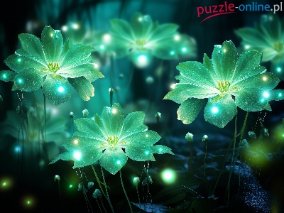 Puzzle ÅšwiecÄ…ce, Kwiaty, Zielone, Grafika