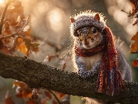 Wiewiórka, Czapka, Gałąź, Grafika AI, Szalik
