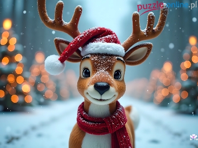 Śnieg, Renifer, Szalik, Grafika, Mikołaja, Czapka, Zima