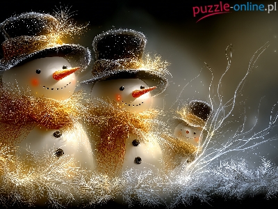 Trzy, Kapelusze, Bałwanki, Grafika AI, Szaliki
