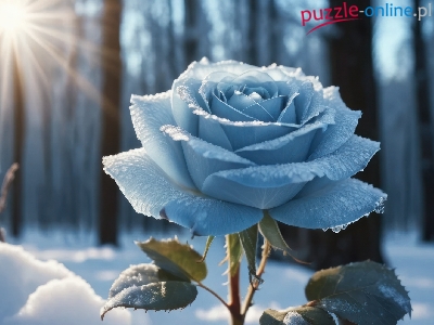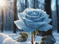 Róża, Zima, Szron, Grafika AI, Promienie słońca