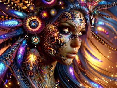 Puzzle Tatuaże, Kobieta, Pióropusz, Grafika