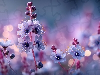 Fioletowe, Rozmyte, Kwiaty, Grafika AI, Tło