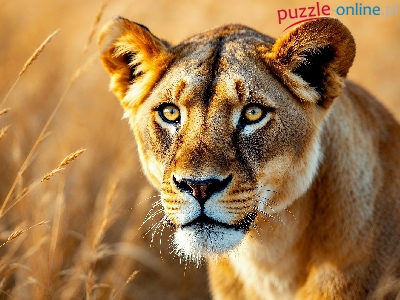 Puzzle Trawa, Lwica, Spojrzenie, Grafika
