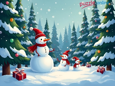 Choinki, Zima, Trzy, Grafika, Bałwany, Las, Prezenty