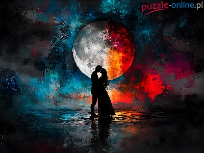 Grafika, Komputerowa Kosmos, Księżyc, Para, Zakochanych, Uczucie, Noc, Miłość