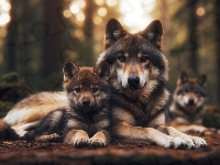Wilki, Młode, Wilczyca, Grafika AI, Wilczki