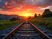 Tory, Chmury, Wzgórza, Grafika AI, Zachód słońca
