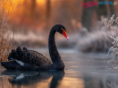 Czarny, Staw, Łabędź, Grafika AI, Zarośla