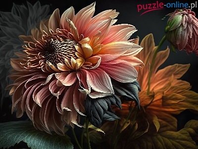 Puzzle Zbliżenie, Kwiaty, Dalie, Grafika