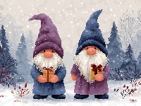 Dwa, Prezenty, Skrzaty, Grafika AI, Zima
