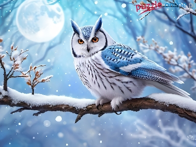 Gałąź, Sowa, Zima, Grafika, Ptak, Śnieg, Księżyc