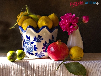 Puzzle Granat, Kwiat, Cytryny, Porcelana
