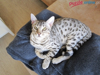 Puzzle Granatowy, Kot, Ocicat, Kocyk