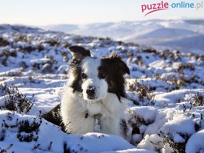 Puzzle Śnieg, Border Collie Griff, Zima