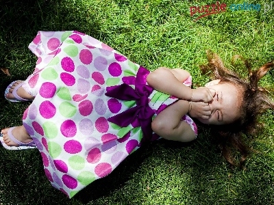 Puzzle Grochy, Dziewczynka, Sukienka, Trawa