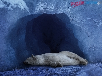 Puzzle Grota, Biały, Niedźwiedź, Lód