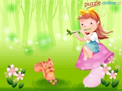 Puzzle Grzyb, Dziecko, Las, Kwiaty