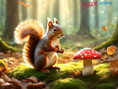 Mech, Muchomor, Wiewiórka, Grzyb, Grafika, Liście