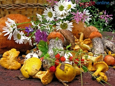 Kosz, Grzyby, Kwiaty