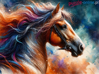 Grafika, Grzywa, Koń, Rozwiana, Kolorowa