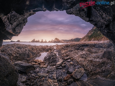 Puzzle Plaża Gueirua, Jaskinia, Skały, Hiszpania