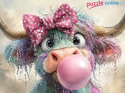 Krowa, Różowa, Długowłosa, Guma do żucia, Kokarda