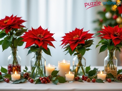 Puzzle Åšwiece, Gwiazda betlejemska, Butelki, Dekoracja