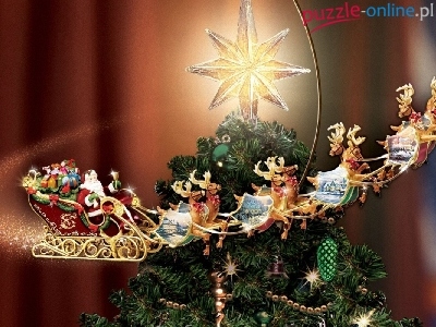 Puzzle Gwiazda, Choinka, Sanie, Boże Narodzenie
