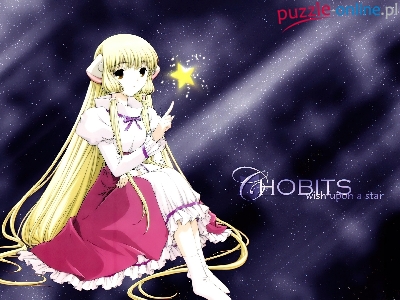 Puzzle gwiazda, Chobits, dziewczyna, napis