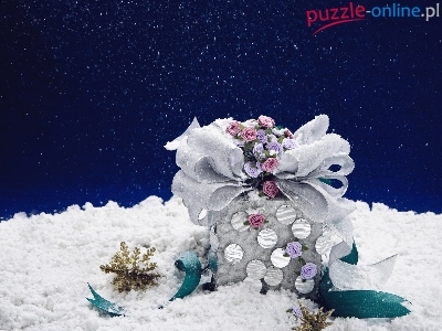 Gwiazdki, Kokarda, Prezent, Ozdoby, Różyczki