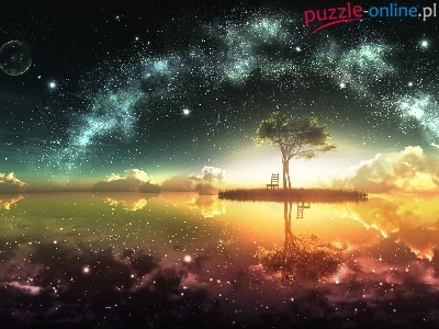 Puzzle Gwiazdy, Fantasy, Niebo, Drzewo