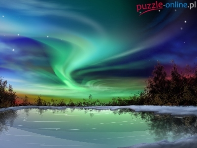 Gwiazdy, Kolorowe, Polarna, Jezioro, Niebo, Zorza