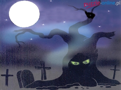 Puzzle krzyże, Halloween, drzewo
