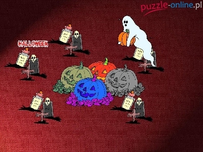 Puzzle Halloween, dynie na cmentarzu
