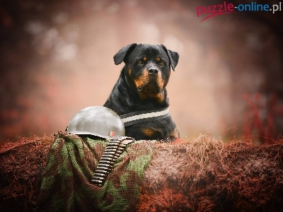Puzzle Hełm, Pies, Rottweiler, Naboje