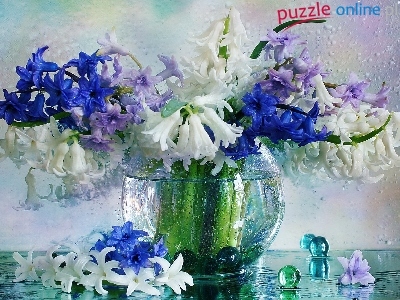 Puzzle Hiacynty, Wazon, Bukiet, Krople