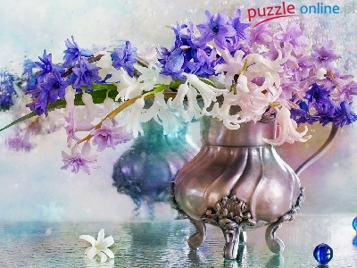 Hiacynty, Odbicie, Wazon, Bukiet, Krople