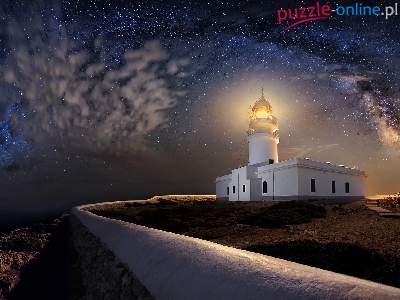 Wybrzeże, Wyspa Minorka, Noc, Hiszpania, Przylądek Cap de Cavalleria, Latarnia morska Far de Cavalleria