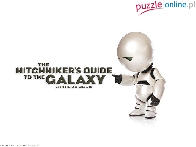 Puzzle robot, Hitchhikers Guide To The Galaxy, napis, tło