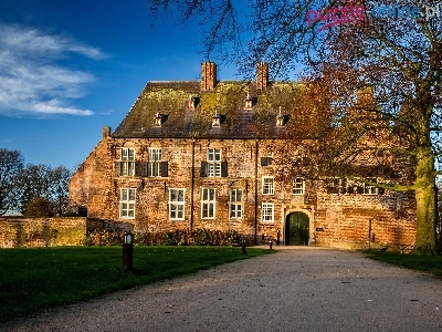 Holandia, Kasteel Hernen, Muzeum, Ścieżka, Trawnik, Wieś Hernen, Zamek Hernen, Gmina Wijchen, Drzewa