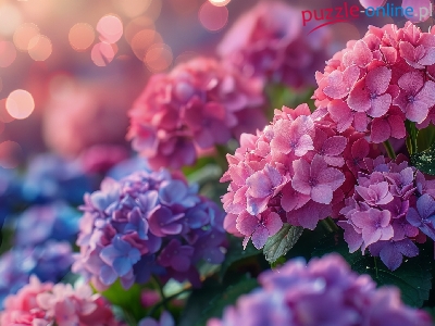Puzzle Fioletowe, Kwiaty, Różowe, Hortensje